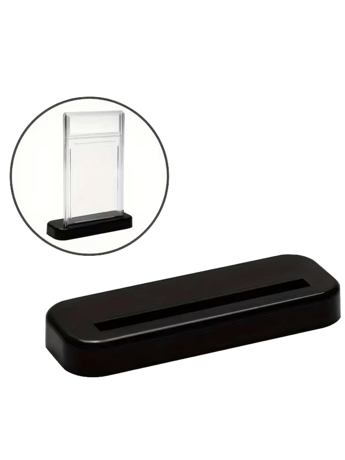 HOBBY GUARDIAN – Espositore Singolo è la soluzione ideale per mostrare e proteggere le tue carte TCG gradate in modo elegante e sicuro. Realizzato con materiali di alta qualità e un design trasparente, valorizza ogni carta mantenendola perfettamente visibile e protetta da polvere e graffi. Con dimensioni di 10.7 x 3.8 cm e misura interna di 8.1 cm, è compatibile con le principali card slab del mercato. Perfetto per collezionisti e appassionati di Pokémon, Yu-Gi-Oh!, Magic e altri TCG, questo espositore combina stile, praticità e protezione professionale